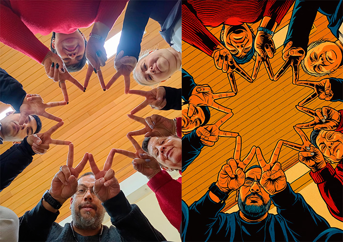 En el cierre del encuentro, se presentó una introducción práctica a la inteligencia artificial y ChatGPT, mostrando sus usos en el diseño y la transformación de imágenes. Cada grupo participó en un ejercicio creativo, convirtiendo una fotografía en distintos estilos gráficos e ilustrativos, aplicando los conceptos aprendidos durante la sesión.